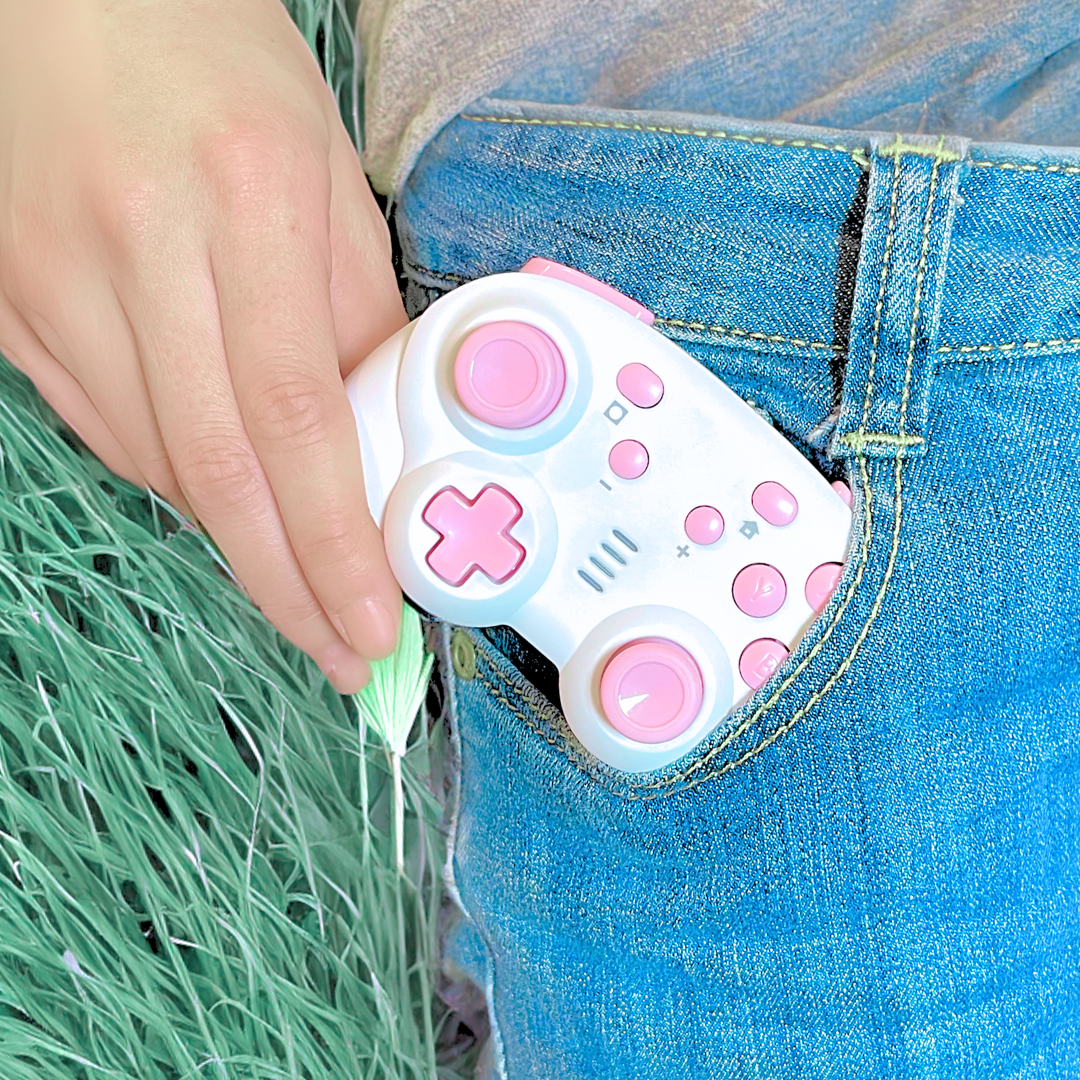 Discover the TurbX Mini Mate Wireless Gaming Controller for Nintendo Switch & PC. Compact, portable, high-precision gamepad with 6-axis gyro, ergonomic design, and extended battery life. Includes a charging stand.